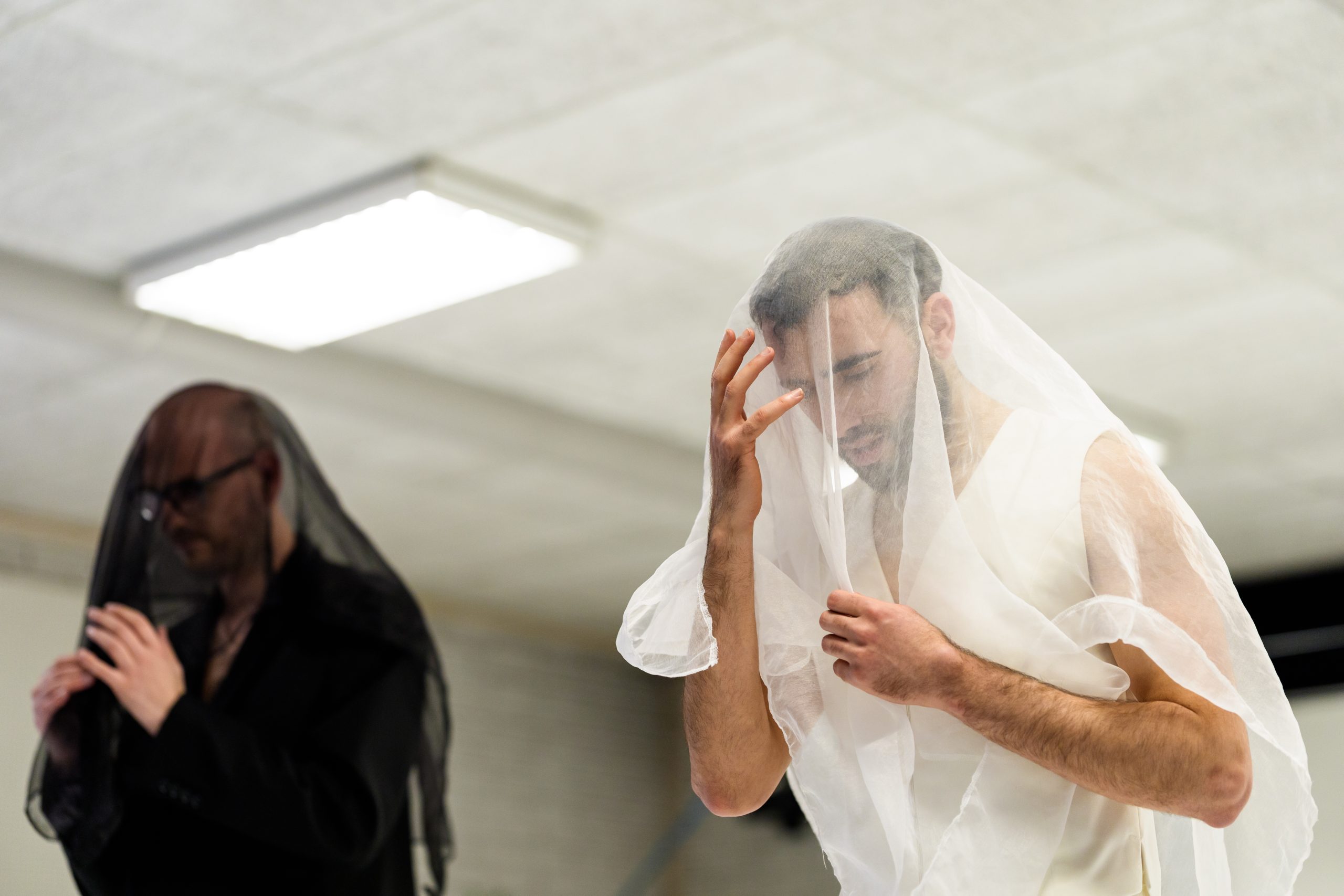 The choreographer’s ‘rock concert’ moves on the boundary between life and death. “I really like shaping that sense of fatal tension in something as joyful as a rock concert.” Dik portrays this duality through contrasting fragments of light and darkness, black-and-white costumes, and a veil that is worn both at weddings and in mourning. “There’s Freddie Mercury-like extravagance in it, but also moments of beautiful stillness. Softness is celebrated alongside rocking rawness. The two extremes constantly embrace each other.”