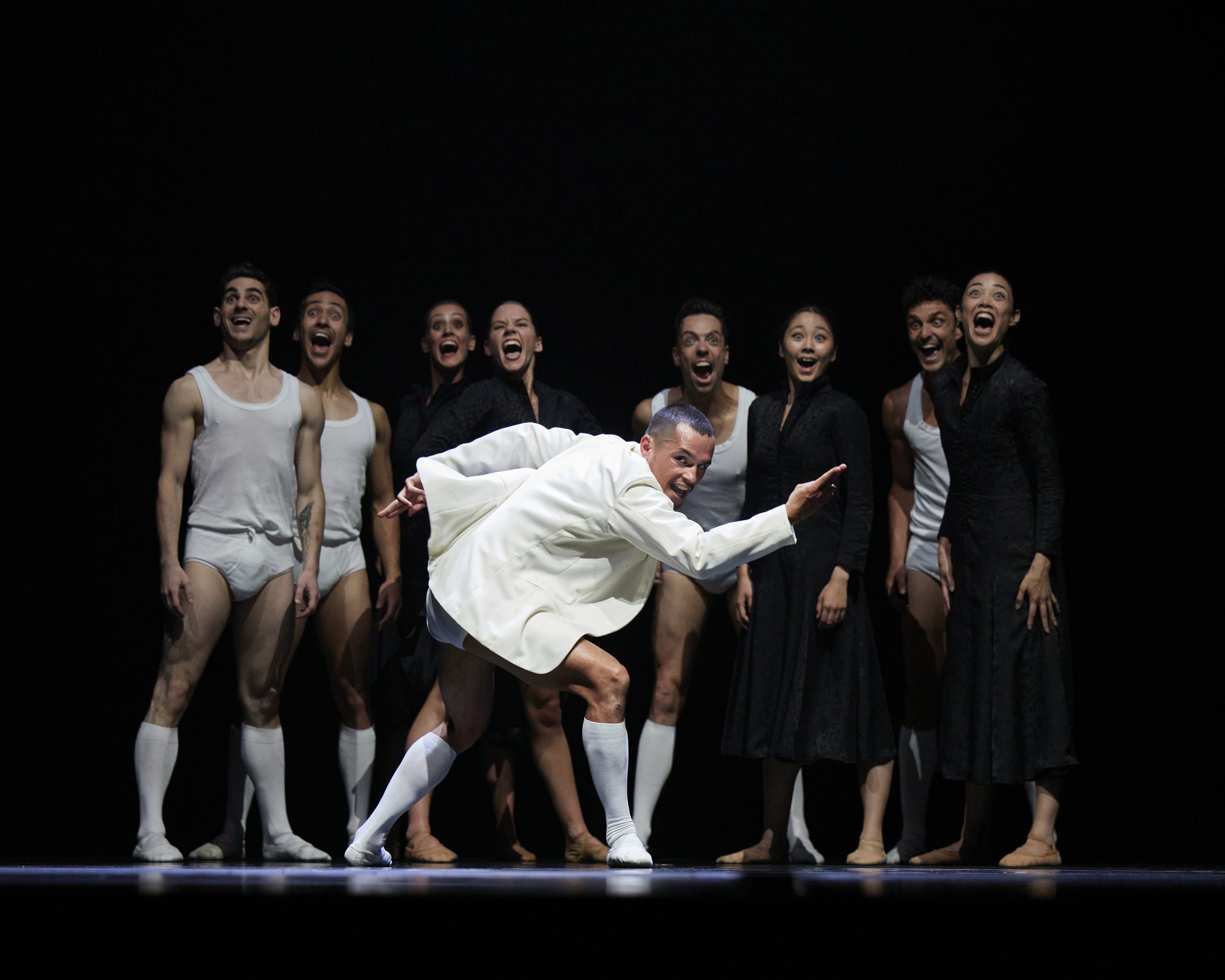 SH-BOOM! dates back to 1994 and was one of the first pieces made by choreographer duo Paul Lightfoot and Sol León. Many of their characteristic qualities can already be found here: SH-BOOM! is a hall of mirrors packed with humour and theatricality, set to music from the first half of the 20th century. The ladies dance in flamboyant dresses while the men are dressed – literally – in their underwear. Introdans is now performing the piece for the first time. Work by the choreographer duo is danced all over the world and they have also received various dance prizes for their creations.