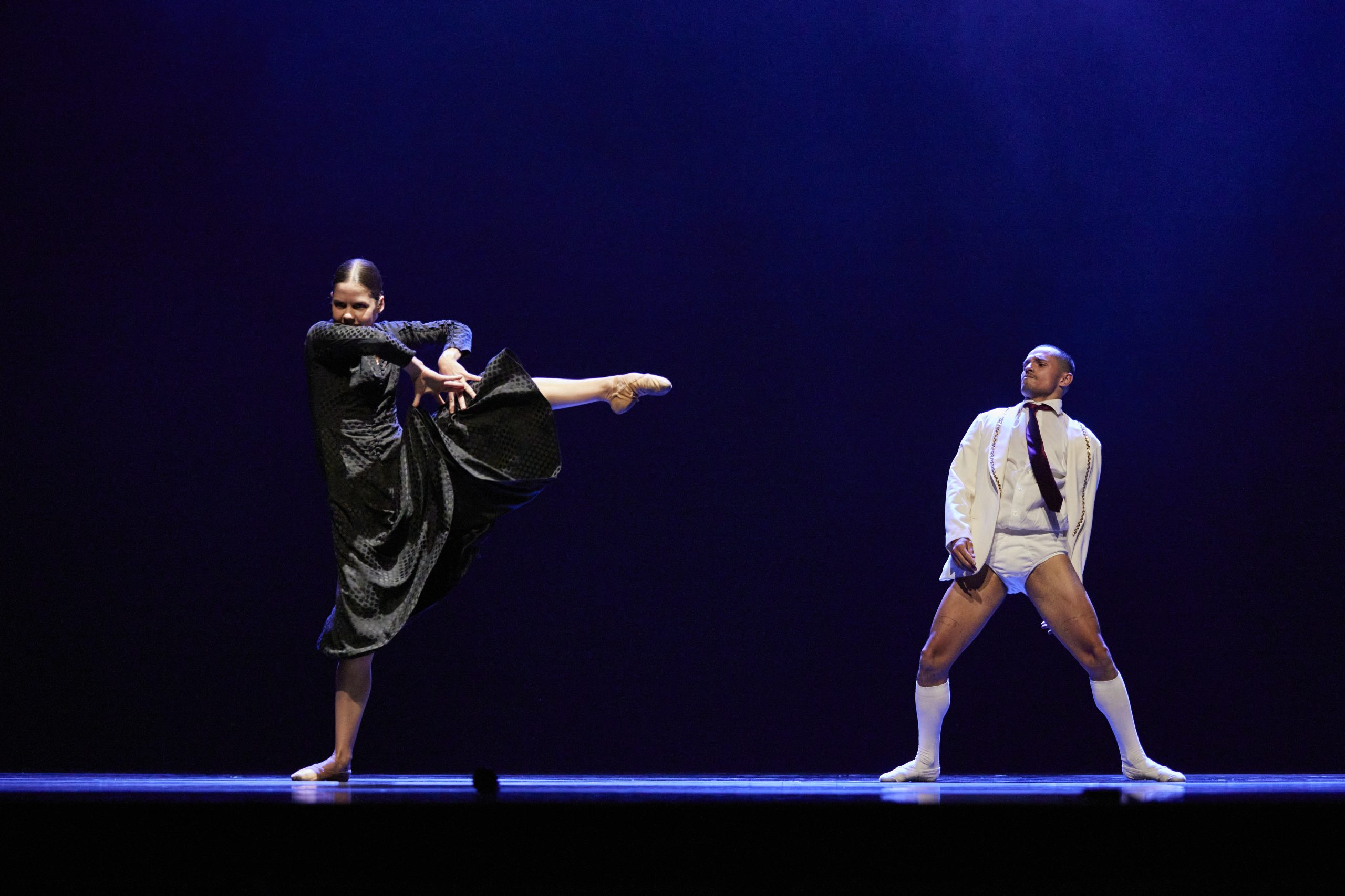 With Azul, choreographer and former Introdancer Jorge Pérez Martínez created a fresh and spirited work that stands out for its own body language and beautiful, special work, danced to three classical Spanish guitar compositions. Pérez Martínez is guided by the atmosphere of the music and the Mediterranean, Spanish feeling. Azul was previously featured in the programme Aqua last fall. During this End of Season we can enjoy it again. On the one hand cheerful and exuberant, but always with a certain melancholy.