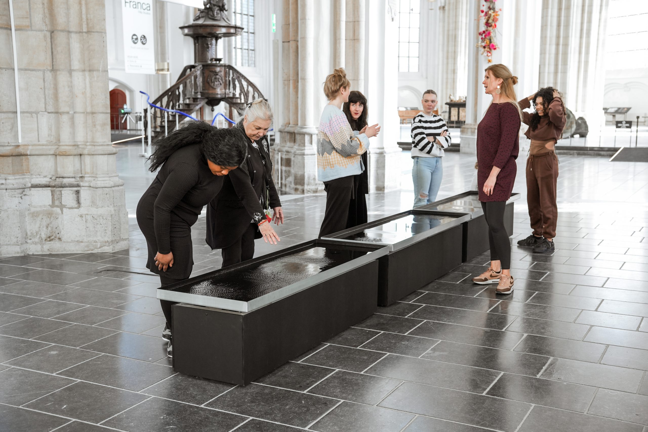 Echo transforms voices into organ-like sounds, Resonance makes water respond to touch with vibrations and reflections, and Linea Franca offers a musical experience upon contact. The exhibition is the result of a two-year Artist in Residence program by Fillip Studios at the Eusebius Church and marks the Arnhem-based collective’s first solo project in their hometown.